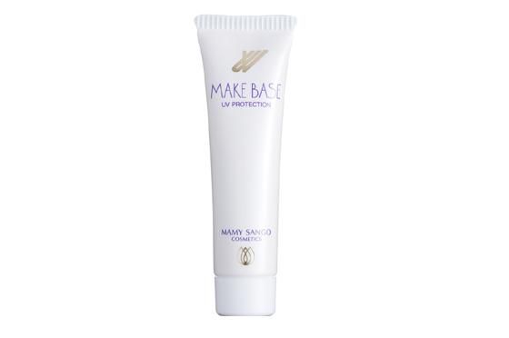 「UVメイクベース」には、お肌に有効な成分を配合しています。ホホバ油はお肌にはりと潤いを与えます。スクワランは深海ザメの肝油から抽出します。この成分は浸透性がよく、脂溶性ビタミンを含み、伸びがよく、べとつかず肌を若々しく保ちます。これらの天然成分により、皮脂、汗に強いお肌にし、ファンデーションのつき、もちを良くし、化粧崩れを防ぎます。